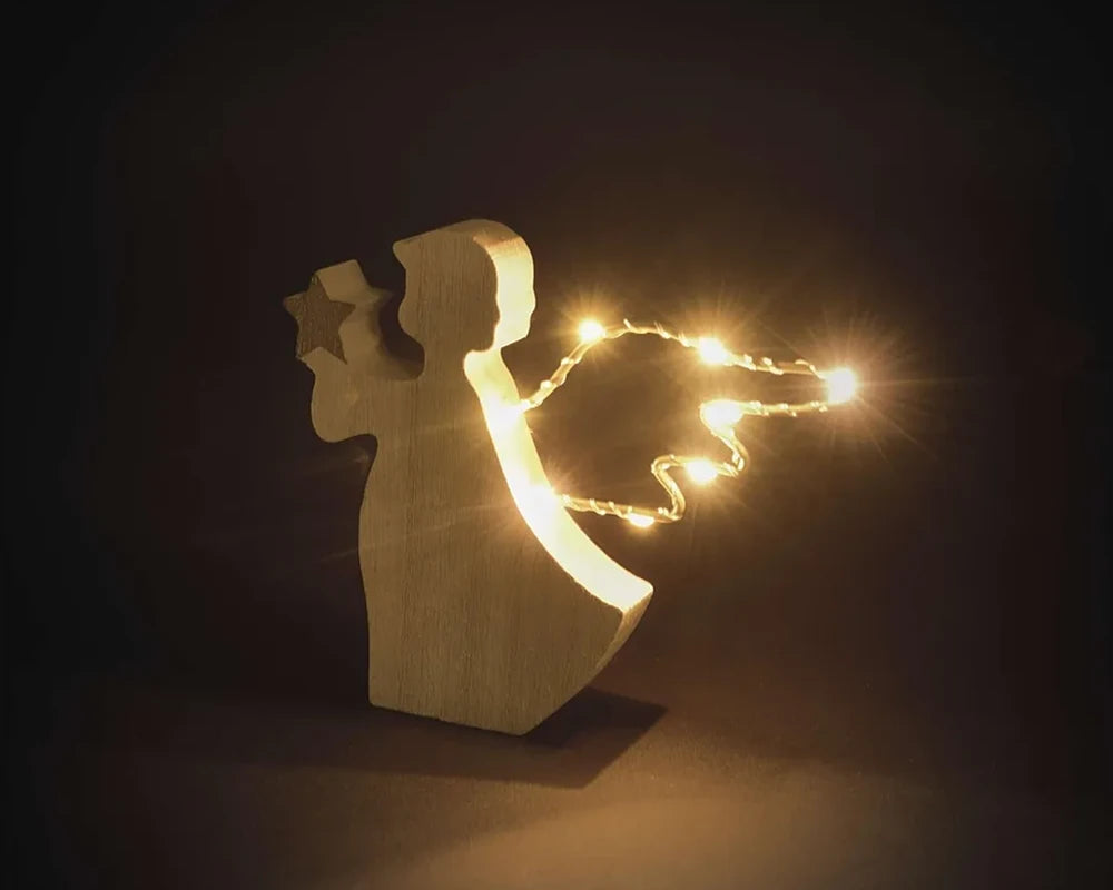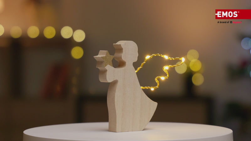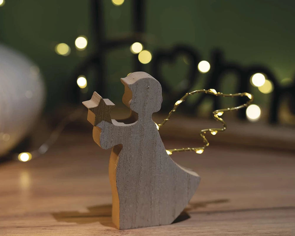 Božićna dekoracija, anđeo, drveni, LED, toplo bijela, 2xAAA, IP20, 13cm
