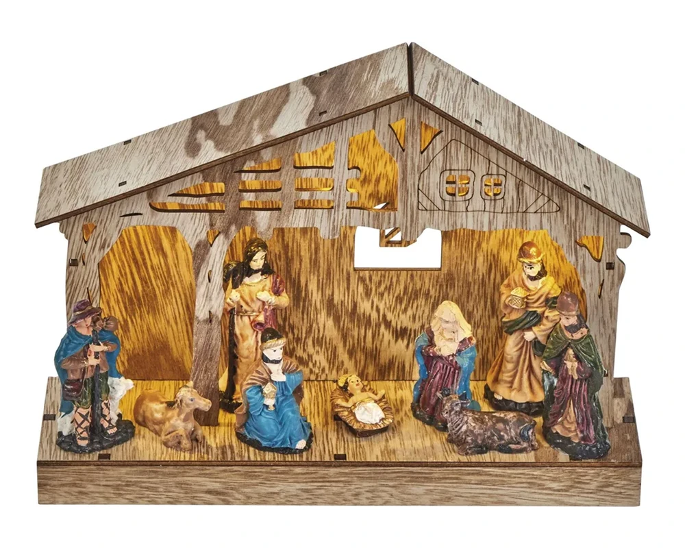Božićne jaslice, drvene, LED, toplo bijela, 3xAA, IP20, 19cm