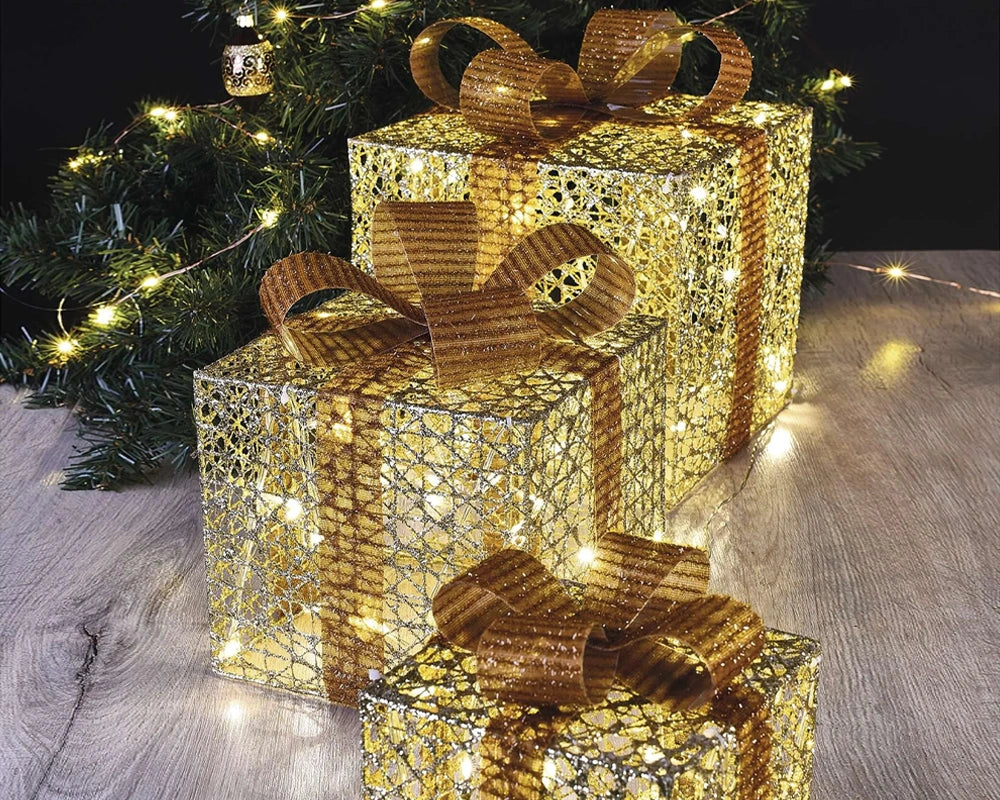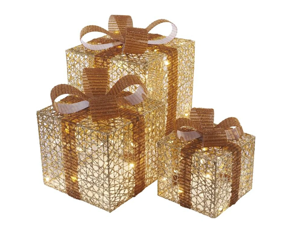 Božićni pokloni, 3 veličine, zlatni, LED, toplo bijela, IP20