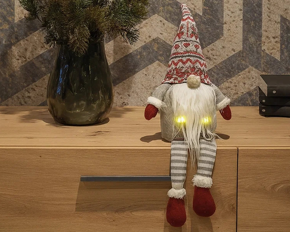 LED Christmas gnome, indoor, warm white, 3xAA, 27cm