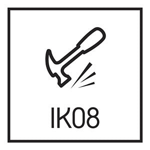 Na ljestvici otpornosti na mehanička oštećenja (1-10), ILIO LED reflektori postižu vrlo dobru ocjenu 8. Prošli su zahtjevna ispitivanja koja su dokazala visoku otpornost korištenih materijala na mehanička oštećenja.
