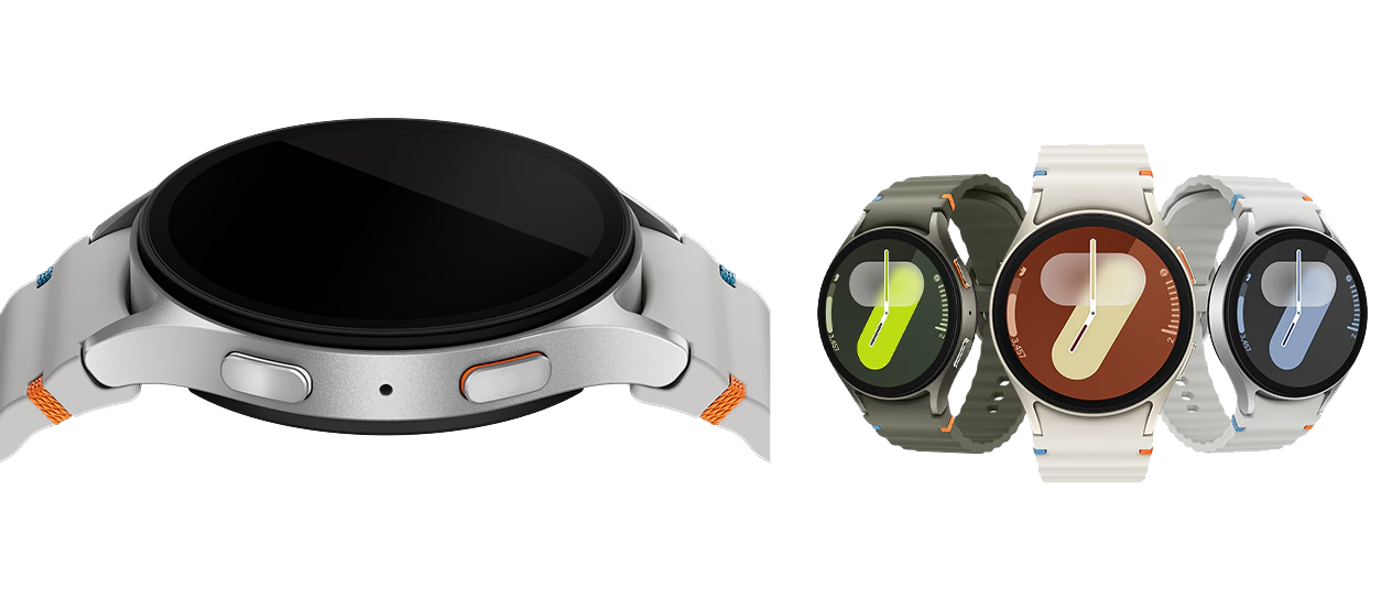 Poboljšajte svoj stil uz Galaxy Watch7. Lebdeći stakleni dizajn i šareni šavovi dodaju dašak elegancije Vašem zapešću, dok valovi na remenu pokazuju da ste spremni za tjelovježbu. Sat je dostupan u malim i velikim verzijama i u tri boje: zelena, srebrna i krem.